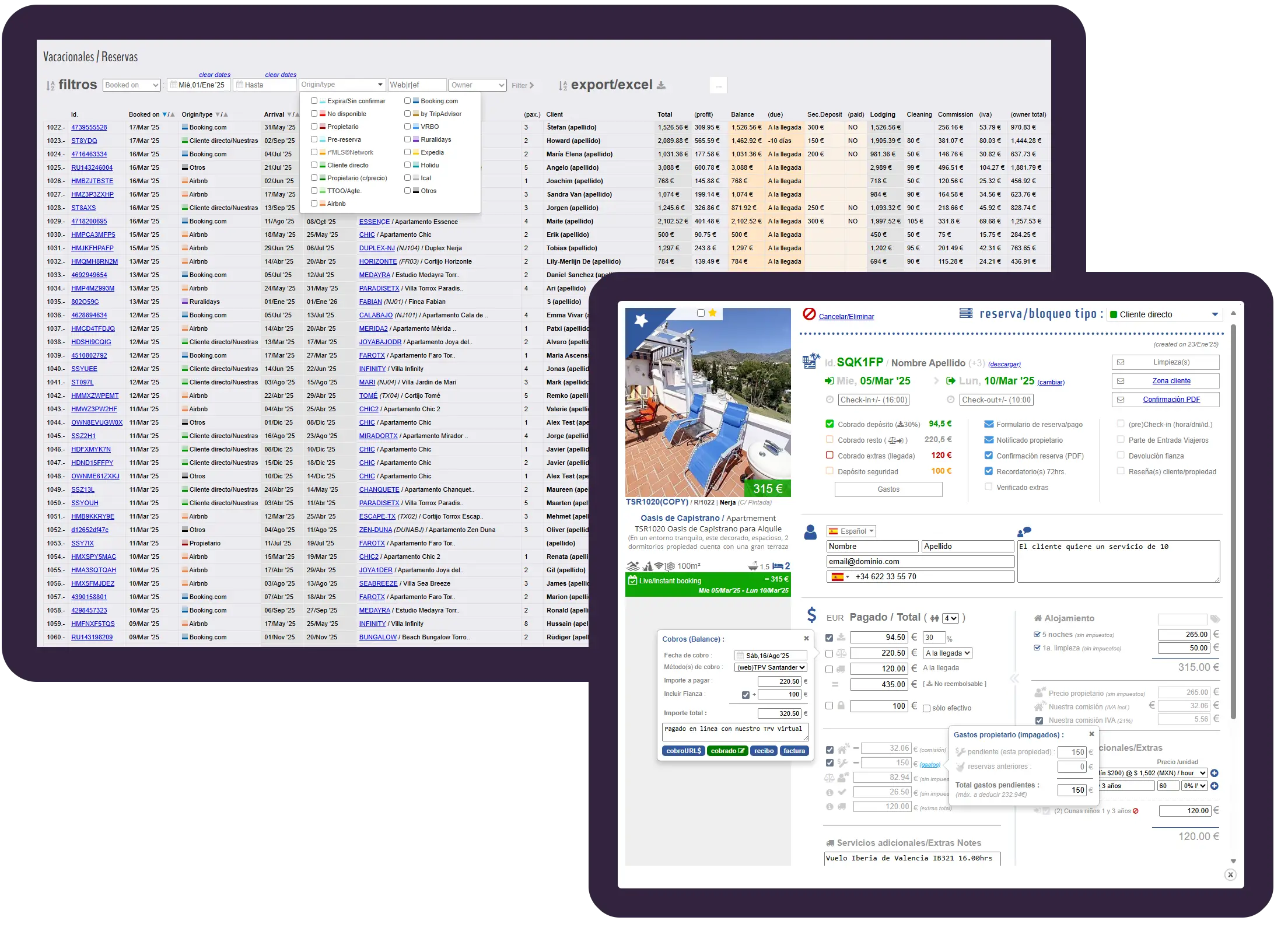 | Disponibilidad en tiempo real Integración mediante API para reservas directas o ICAL + app de gestión propietario. |
